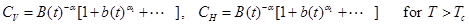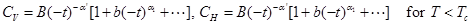and α are the specific heat exponents below and above