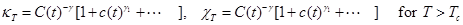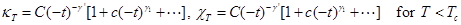 and γ are the compressibility or susceptibility exponents below and above