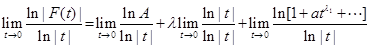 and the function is singular at t =0 . We are now interested in extracting the exponent λ. Let us take the following limit