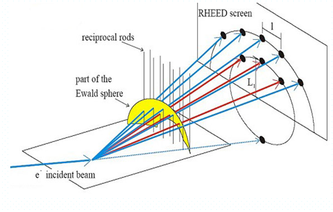• The spots forming a characteristic RHEED pattern depend on the morphology and roughness on the surface. Hence, they become a powerful tool for in-situ analysis of film deposition.