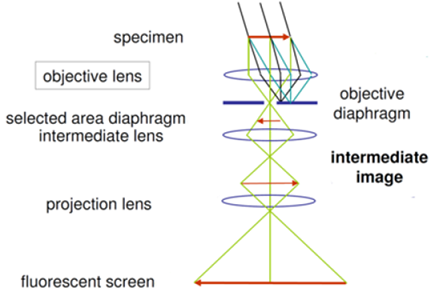 Figure 14.03: Schematic ray diagram of drak-field imaging mode.