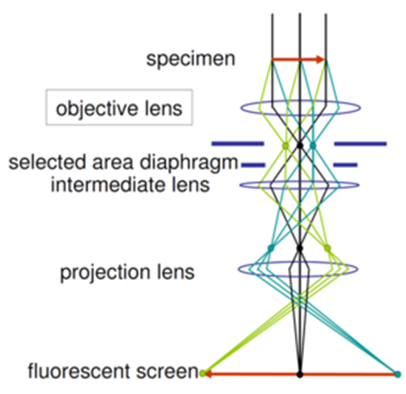 As a result, the image on the screen of the TEM will be a series of spots or rings (corresponding to a satisfied diffraction condition of the sample's crystal structure).