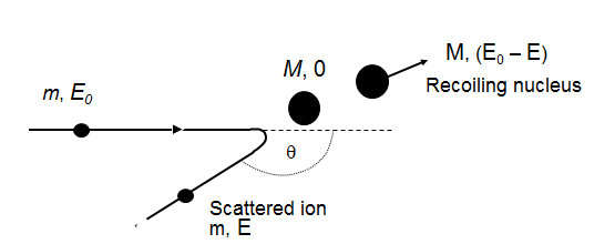 • Consider an ion of charge z, mass m and initial kinetic energy E0 being scattered elastically from a stationary nucleus of charge Z and mass M purely by the Coulomb force. The final energy E of the scattered ion is a function of the angle of scatter θ from the initial direction and the ratio M/m.