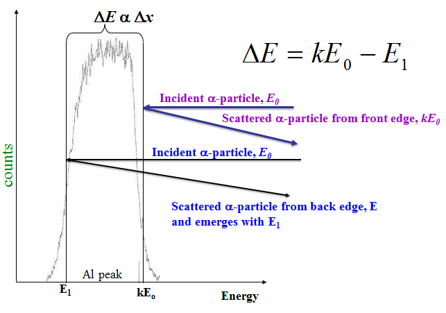 Figure 18.09: Schematic of calculating thickness from RBS data.