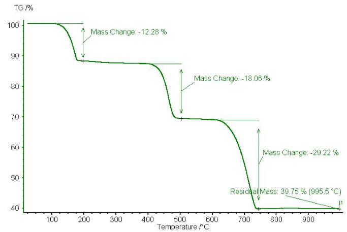 Figure 23.04 shows the heat decomposition mass curve of Whewellite (calcium oxalate monohydrate) [1]
