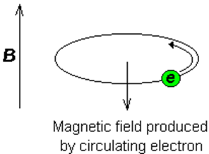 Consider the s-electrons in a molecule as displayed in Figure 35.05. They have spherical symmetry and circulate in the applied field, producing a magnetic field which opposes the applied field. This means that the applied field strength must be increased in order for the nucleus to absorb at its transition frequency. This up-field shift is also termed diamagnetic shift.
