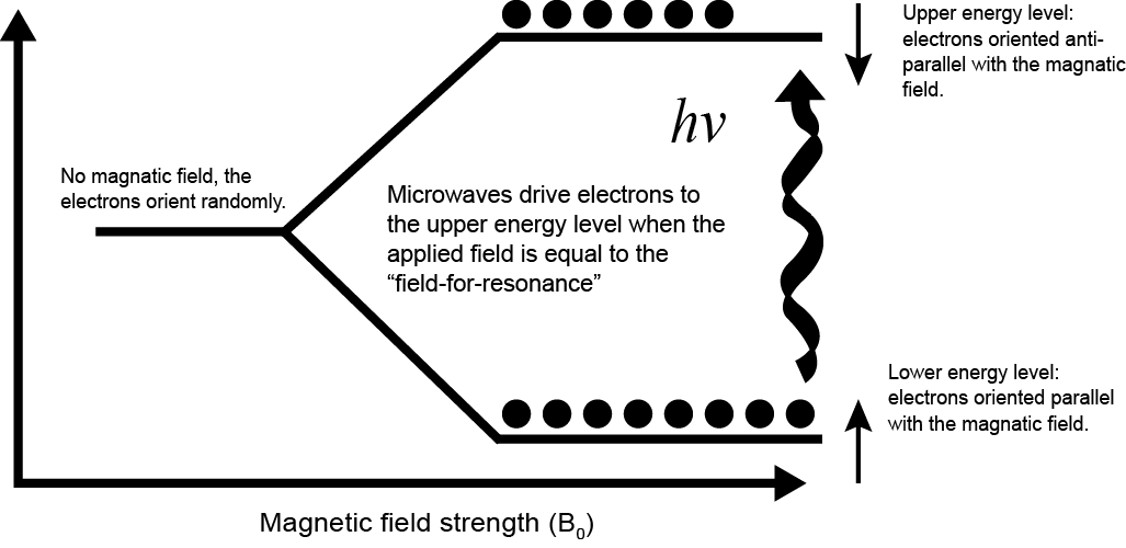 As discussed earlier, the basis of EPR lies in the spin of an electron and its associated magnetic moment. When an electron is placed within an applied magnetic field, the two possible spin states of the electron have different energies. The lower energy state occurs when the magnetic moment of the electron, μ, is aligned with the magnetic field and a higher energy state occurs where μ is aligned against the magnetic field.