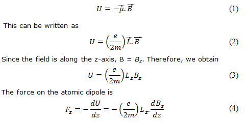 Now, each atom consists of orbital angular momenta and hence magnetic moments. If μ is the resultant magnetic moment of the atom, and B is the applied magnetic field then the potential energy of the atom in the field is