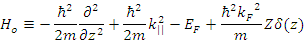 is the Fermi wavevector. The third term in eqn.(10) represents a δ function type scattering potential at the interface characterized by the dimensionless parameter Z. The exchange field hex(z) is given by