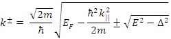 and k+(–) is the z component of the wavenumber of an electron (hole) like quasiparticle: