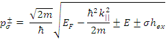 where is the z-component of the wavenumber of an electron (hole) with spin σ.