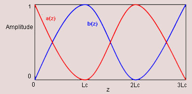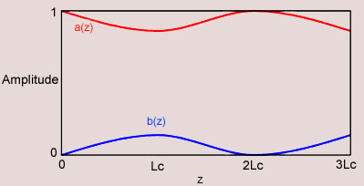 If the two waveguides are dissimilar i.e. if , and if , field amplitude of waveguide A remains almost constant and amplitude of the wave on waveguide B is much less than 1. That is in this situation most of the power remains with waveguide A and a small power is transferred to waveguide B (see Fig). |