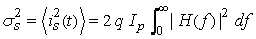 The receiver bandwidth depends upon at what location in the receiver the noise is measured. If the noise is measured just after the photo-detector, the bandwidth is equal to the intrinsic bandwidth of the detector. However, if the noise is measured at the end of the receiver, then the transfer function of the receiver comes into picture and the noise variance is given as |