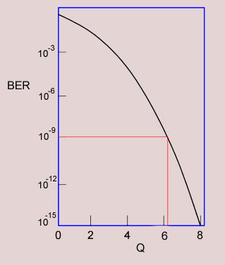 The BER is a very steep function of Q. For change in Q by 1, the BER drops almost by 3 orders of magnitude.