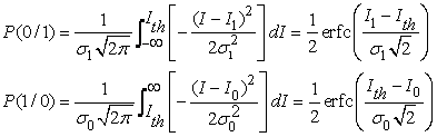 For thermal dominated regime, are equal and the threshold is mean of . That is the threshold is half way between the 0 and 1 levels.