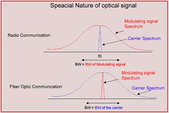 For an optical communication link the highest data rate is about 10GHz. This translates approximately to a wavelength range of 0.1nm. For all practical purposes, the loss of the optical fiber can be assumed constant over a bandwidth of 0.1nm. Therefore, we note that uniform amplitude response condition is well satisfied for the optical fiber. The signal depending upon the loss may reduce in amplitude but there is no distortion of the signal due the loss. |
