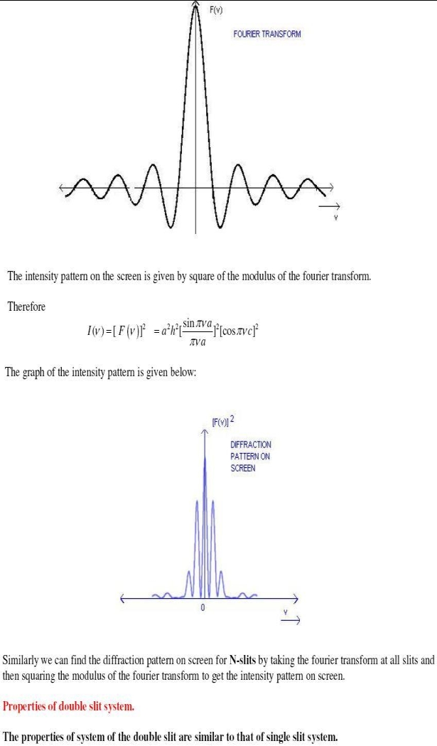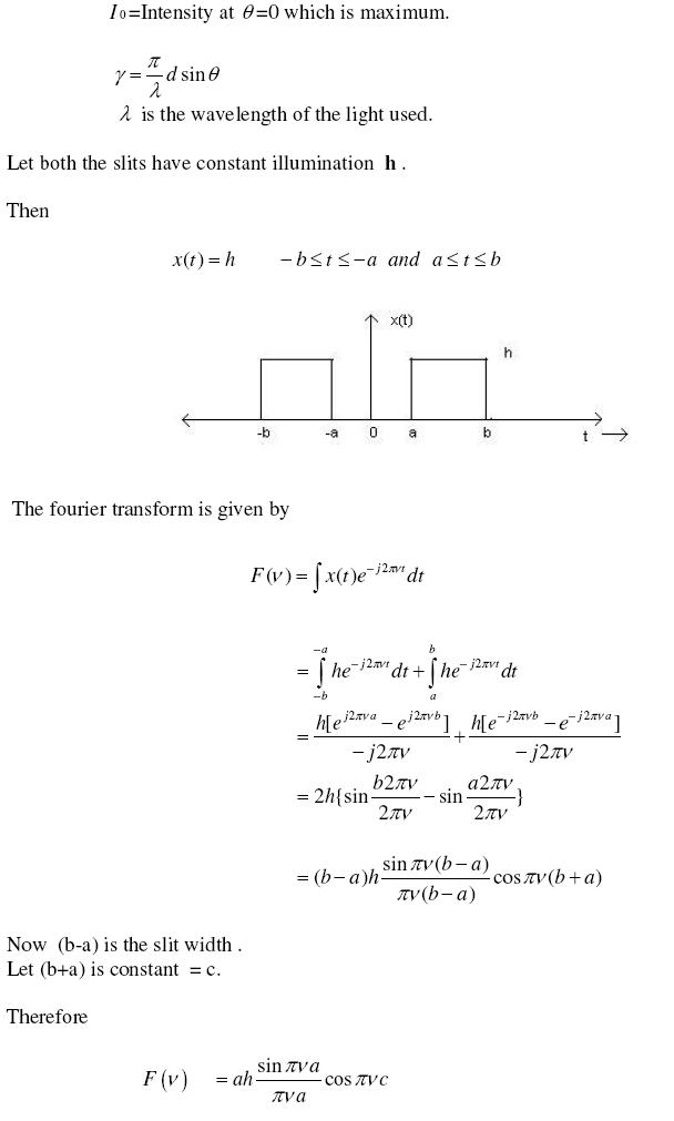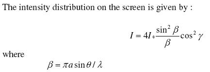 The Fraunhofer diffraction pattern produced by two parallel slits (each of width a) separated by a distance d. We