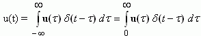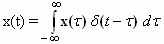 In this section our goal is to derive the response of a LTI system for any arbitrary continuous input x(t). In complete analogy with the discussion on Discrete time analysis we begin by expressing x(t) in terms of impulses. In discrete time we represented a signal in terms of scaled and shifted unit impulses. In continuous time, however the unit impulse function is not an ordinary function (i.e. it is not defined at all points and we prefer to call the unit impulse function a "mathematical object"), it is a generalized function ( it is defined by its effect on other signals) .