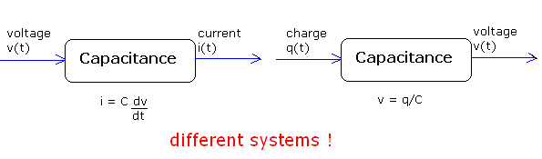 As these examples may have made evident, we look at many physical objects/devices as systems, by identifying some variation associated with them as the input signal and some other variation associated with them as the output signal (the relationship between these, that essentially defines the system depends on the laws or rules that govern the system) . Thus a capacitance with voltage (as a function of time) considered as the input signal and current considered as the output signal is not the same system as a capacitance with, say charge considered as the input signal and voltage considered as the output signal. Why?