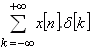 to pick up a certain point from a discrete signal: suppose our signal x[n] is multiplied by then the value of