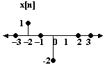 This may seem redundant now, but later we shall find this notation useful when we take a look at convolutions etc. Here, we also want to introduce a convention for denoting discrete signals. For example, the signal x[n] and its representation are shown below :
