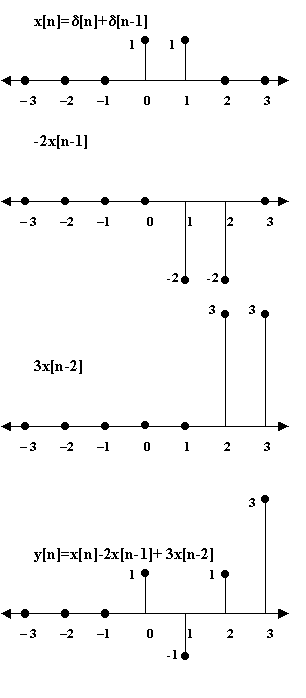 y[n] = x[n] - 2x[n-1] + 3x[n-2] |