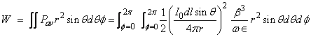 After substituting for and doing some manipulations, and noting that the intrinsic impedance of the medium = , we get the total radiated power as