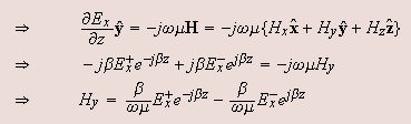 We can note that the ratio of the electric field and the magnetic field for a wave travelling in direction is