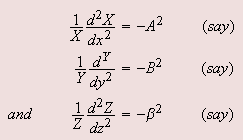 Note that in equation 6.37 the first term is a function of , the second term is a function of only, the third term is a function of only and fourth term is a constant. Since the equation is to be satisfied for every value of each term in equation 6.37 must be constant i.e |