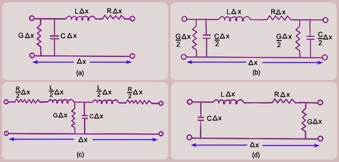 The lumped circuit for a small section of the line can be any one of that shown below :