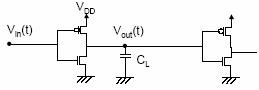 From figure 16.21, when Vin = 0 the capacitor CL charges through the P-MOS, and when Vin = 5 the capacitor discharges through the N-MOS