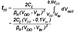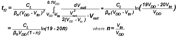 Integrating from t = t1, corresponding to Vout=0.9 VDD, to t = t2 corresponding to Vout=(VDD-Vtn) results in,