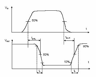 | Due to the symmetry of the CMOS circuit the rise time can be similarly obtained as; |