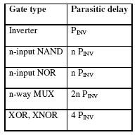 Fig 22.72: parasitic delay of basic gates