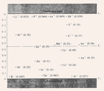 Fig.3.3 Energy levels of common impurities in silicon, measured from