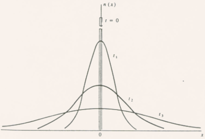 spread out in time due to diffusion, and eventually n(x) becomes a