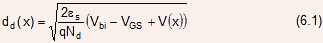- Note: from Eqn.(6.1), it is obvious that the depletion width under