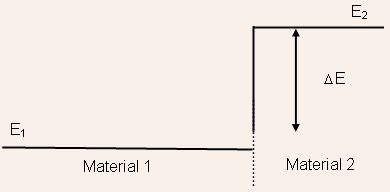 due to flow of electrons from material-1 to material-2 can be written