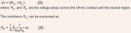 where V is the applied voltage and DV is the drop across the ohmic contact