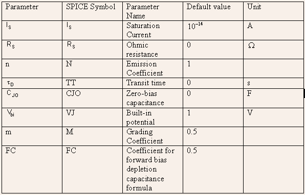 - The SPICE model for the diode includes several other parameters describing