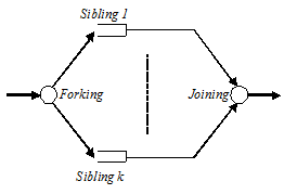 Forking Process - A job is offered to two or more sibling queues for every job entering the Fork-Join Queue.