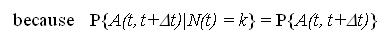 Note that the latter holds because the arrival process is Poisson and therefore the probability of an arrival in the time interval (t, t+Δt) will not depend on N(t), the number in the system at time t.