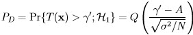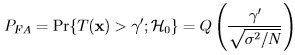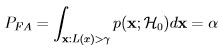 where the threshold γ is computed from the constraint on the probability of false alarm value: