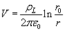 . The electrical potential at a distance r from an infinite line charge of density