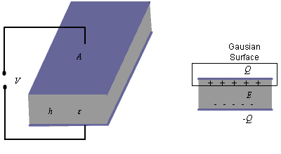 For the parallel plate capacitor shown in the figure 2.20, let each plate has area A and a distance h separates the plates. A dielectric of permittivity |