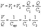 | As we have assumed Series and parallel Connection of capacitors Capacitors are connected in various manners in electrical circuits; series and parallel connections are the two basic ways of connecting capacitors. We compute the equivalent capacitance for such connections. Series Case: Series connection of two capacitors is shown in the figure 2.21. For this case we can write,