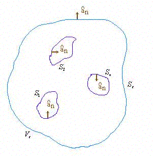 Solution of an electrostatic problem specifying its boundary condition is the only possible solution, irrespective of the method by which this solution is obtained. To prove this theorem, as shown in figure 2.23, we consider a volume Vr and a closed surface Sr encloses this volume. Sr is such that it may also be a surface at infinity. Inside the closed surface Sr , there are charged conducting bodies with surfaces S1 , S2 , S3,....and these charged bodies are at specified potentials. |