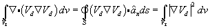 Thus we find that Vd satisfies Laplace’s equation in Vr and on the conductor boundaries Vd is zero as V1 and V2 have same values on those boundaries. Using vector identity we can write: