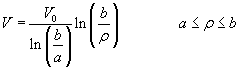 From the symmetry of the problem, we observe that the potential is independent of Integrating the above equation two times we can write where C1 and C2 are constants, which can be evaluated from the boundary conditions Evaluating these constants we can write the expression for the potential as |