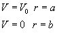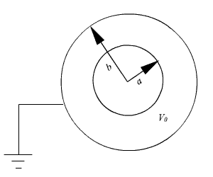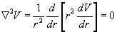 Considering the symmetry, we find that the potential is function of r only. The Laplace’s equation can be written as: